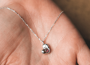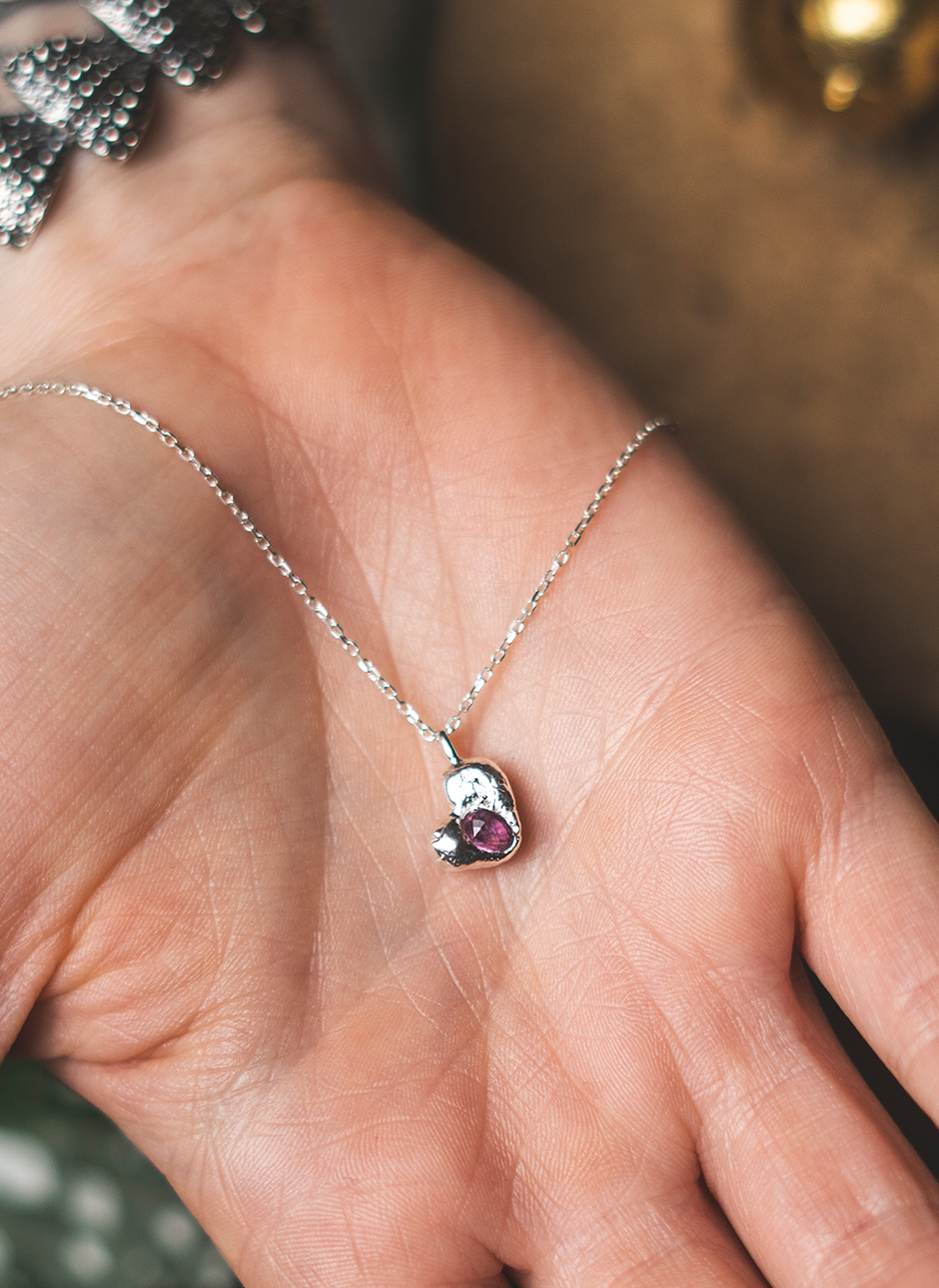 São pequenos corações em prata 925, que nascem do fogo e se enchem de brilho com uma safira. Nenhum é igual ao outro, nem redondinho nem perfeitinho, mas todos são únicos, tal como EU e TU...