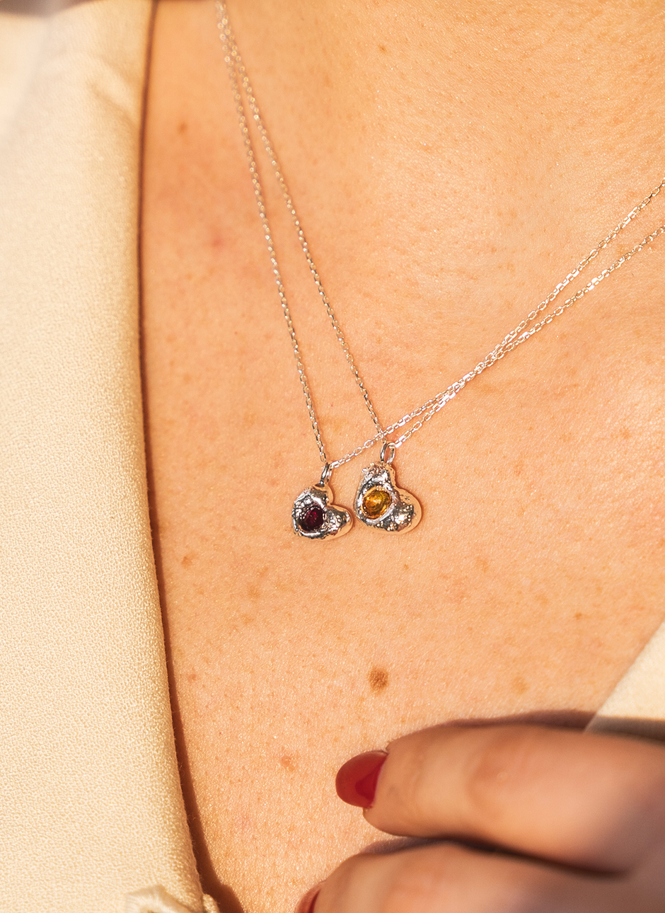 São pequenos corações em prata 925, que nascem do fogo e se enchem de brilho com uma safira. Nenhum é igual ao outro, nem redondinho nem perfeitinho, mas todos são únicos, tal como EU e TU...